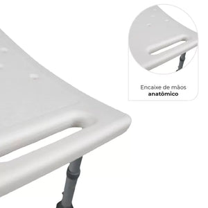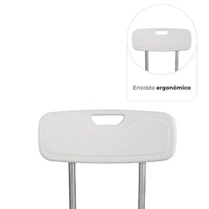 Banco para banho D2 com corpo de alumínio anodizado, e encosto ergonômico.