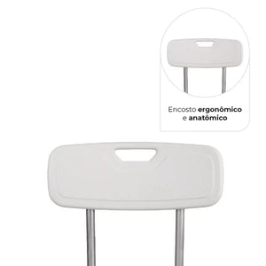 Banco para banho D3 com corpo de alumínio anodizado, encosto e apoio para braços anatômicos.