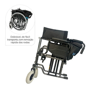 A Cadeira de Rodas D400 foi desenvolvida para suportar o uso intenso, mesmo em terrenos irregulares, de fácil movimentação em locais com espaço reduzido. Oferece facilidade no transporte devido a sua estrutura dobrável e desmontável.