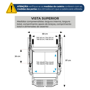 - Diâmetro de roda traseira de propulsão: 60 cm;