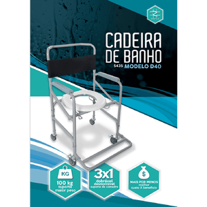 É dobrável e desmontável, o que facilita guardá-la após o uso. A D40 conta com suporte para comadre, apoio de braços ergonômico, encosto em material sintético flexível e apoio de pés removível.