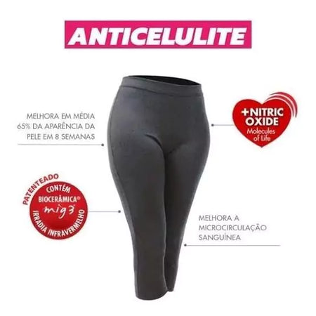 A Linha de produtos Anticelulite Invel® é confeccionada com TECIDO DE BIOOESTIMULAÇÃO COM PROPRIEDADE TÉRMICA registrado na ANVISA, incorporado com a exclusive Biocerâmica MIG3, unindo o que há de mais moderno em ciência e tecnologia térmica para melhorar sua saúde e celulite. Ela pode ser usada por baixo das roupas no dia a dia ou até mesmo para dormir. As bermudas/shorts/legging/calças anticeluite Invel com tecidos de bioestimulação térmicos, vão muito além de uma vestimenta qualquer, elas controlam a temperatura corporal, gerando um agradável conforto térmico, melhorando a circulação e aumentando a oxigenação sanguínea, o que ajuda na resposta inflamatória das células, melhorando a celulite e o aspecto da pele. Os tecidos Invel de biooestimulação são altamente resistentes, leves, secam rapidamente, são adequados para usar em qualquer estação do ano, e promovem uma compressão graduada com a melhora oxigenação e da circulação sanguínea local reduzindo a fadiga muscular e consequentemente, aliviando dores e inchaços. Além dos benefícios da Biocerâmica MIG3, os produtos Invel têm tratamento UV Block, que bloqueia os raios UVA e UVB, mantendo sua pele saudável e livre de manchas, e também o tratamento Aqua Dry que permite que o tecido respire e tenha uma rápida absorção e evaporação do suor, mantendo você seca e confortável, mesmo após um treino.