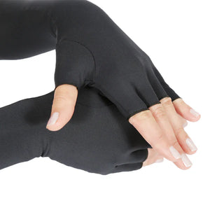 Para aliviar as dores nas mãos e punhos, a Invel® traz a sua linha de Luvas, com registro na ANVISA, que auxiliam no tratamento para o alívio da dor de causa muscular. Confeccionada com a exclusiva tecnologia Biocerâmica MIG3®, a Luva Invel é ativada ao entrar em contato com a pele, auxiliando na remoção de substâncias inflamatórias, que influenciam as sensações doloridas, aumenta a quantidade de oxigênio e nutrientes na área afetada, tornando este produto ideal durante o dia, durante a noite, ou até mesmo para dormir. Ao capturar e refletir o calor natural do corpo, melhora a microcirculação sanguínea e a recuperação muscular. A Luva Invel® OTI Antebraço é aberta nas extremidades dos dedos, facilitando o seu uso durante o dia a dia para digitar em teclados ou até mesmo para usar o celular.