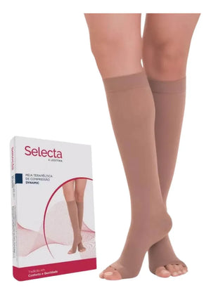 Meia Selecta Dynamic (Malha Circular), Cor Bege , 3/4 Panturrilha, 20/30 mmHg, Média Compressão (Ponteira Aberta)
