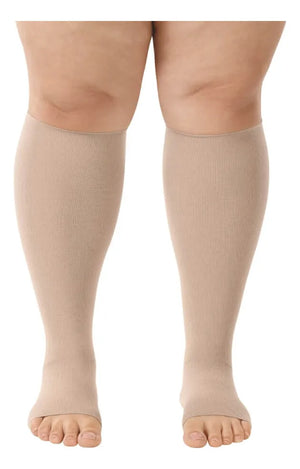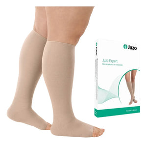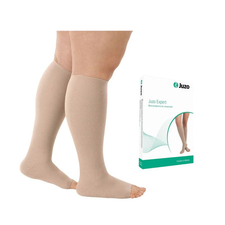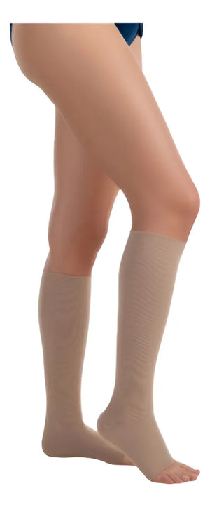 Meia Selecta Expert (Malha Plana), Cor Bege, 3/4 Panturrilha,20-30 mmHg, Media Compressão (Ponteira Aberta)