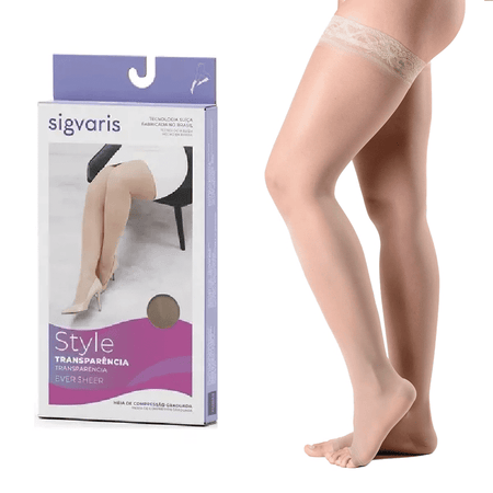 Meia Sigvaris Ever Sheer, Cor Natural, 7/8 Meia-coxa, 20-30mmHg, Média Compressão (Ponteira aberta)