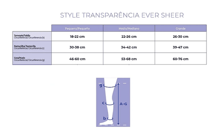 Para definir o tamanho correto da meia de compressão, é necessário aferir as medidas das pernas, siga o passo a passo a seguir e compare os resultados com a tabela de medidas .