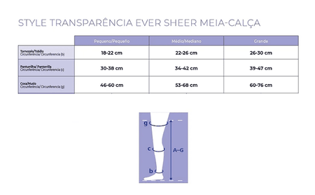 ATENÇÃO: ATENTE-SE AO ESCOLHER O TAMANHO DA MEIA, REALIZE A MENSURAÇÃO CORRETA DA SUA PERNA ANTES DE ESCOLHER O TAMANHO DA SUA MEIA, POIS ESTE IRÁ DEFINIR A COMPRESSÃO QUE A MEIA IRÁ EXERCER EM SUA PERNA!
