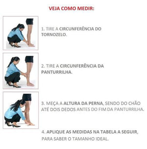 Para definir o tamanho correto da meia de compressão, é necessário aferir as medidas das pernas, siga o passo a passo a seguir para saber como tirar suas medidas de forma correta.