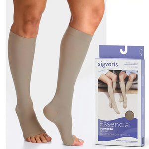Meia Sigvaris Select Comfort, cor Natural Escura, 3/4 (Panturrilha), 20-30mmHg, Média Compressão (Ponteira Aberta)