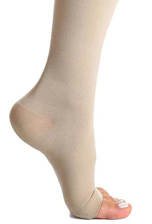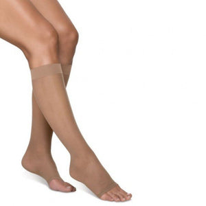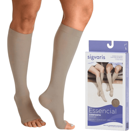 Meia Sigvaris Select Comfort, cor Natural Escura, 3/4 (Panturrilha), 30-40mmHg, Alta Compressão (Ponteira Aberta)
