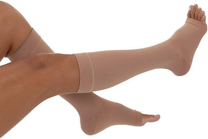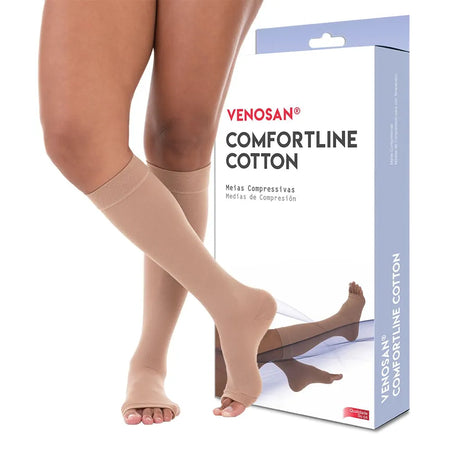 Meia Venosan Comfortline Cotton, cor bege, 3/4 panturrilha, 30-40 mmHg, Alta Compressão (Ponteira Aberta)