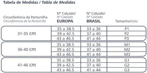 ATENÇÃO: ATENTE-SE AO ESCOLHER O TAMANHO DA MEIA, REALIZE A MENSURAÇÃO CORRETA DA SUA PERNA ANTES DE ESCOLHER O TAMANHO DA SUA MEIA, POIS ESTE IRÁ DEFINIR A COMPRESSÃO QUE A MEIA IRÁ EXERCER EM SUA PERNA!