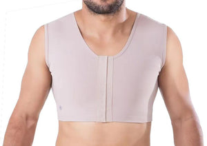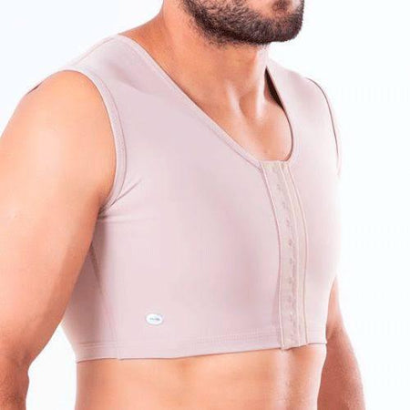 O corpete masculino com abertura frontal para pós-ginecomastia foi desenvolvido com tecido tecnológico em Microfibra, composto por cristais bioativos que absorvem o calor do corpo, devolvendo esta energia sob a forma de raios infravermelho longo que atravessam a pele estimulando o metabolismo celular.