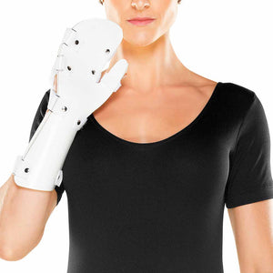 Anatomicamente projetada para oferecer imobilização funcional do punho, mão e dedos. Confeccionada em plástico rígido (ABS), leve e resistente, que não resseca ou quebra com o passar do tempo e forro atoalhado para garantir conforto durante o uso. Possui fecho em Velcro® para garantir fechamento preciso e eficiente. Produto lavável e forro removível para melhor higienização.