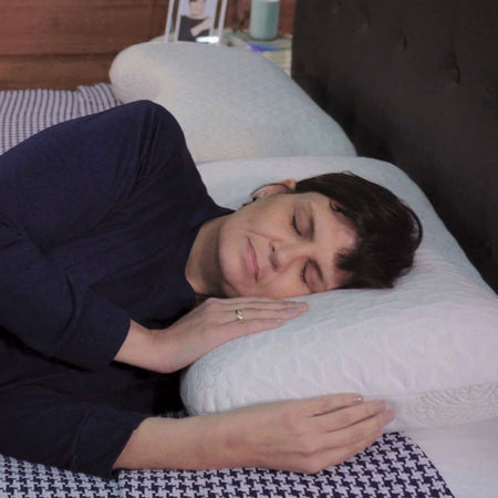 • Anatômico dos dois lados: formato linear para apoio da cabeça e pescoço de um lado, que favorece o sono em outras posições e do outro lado possui um formato exclusivo para encaixe do ombro, que favorece às pessoas que preferem dormir de lado